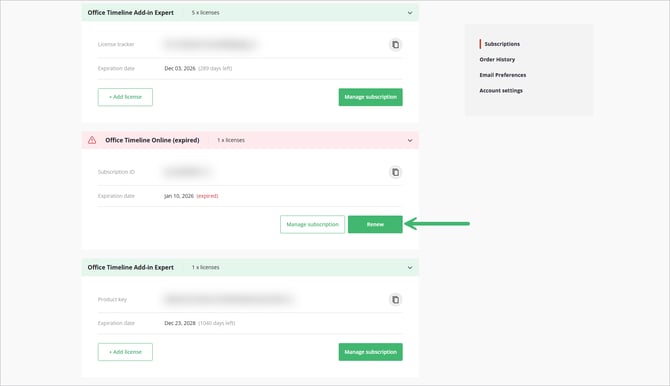 Step 2: Find the Subscription and Click Renew
