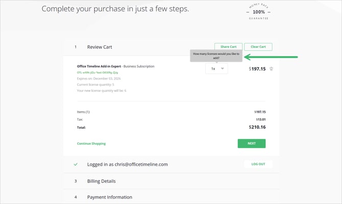 Select the number of licenses you would like to add.